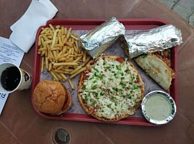 The outlet serves some of our favourite dishes, the galouti kebab and paratha here is legendary and so is the paneer roll, the pizza, simple cheeseburger, rice, juicy lucy chicken and cheesy nachos.