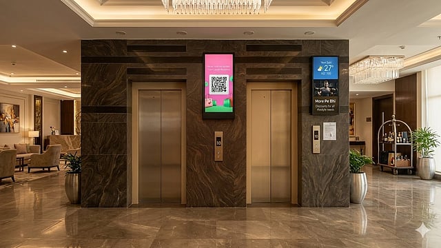 ScreenPe changes that by placing your brand exactly where attention naturally lingers. Digital screens in elevator lobbies catch residents while they wait, while static frames inside elevators and reception areas keep your brand directly in their line of sight. The result is consistent recall, ensuring your venture stays top of mind.