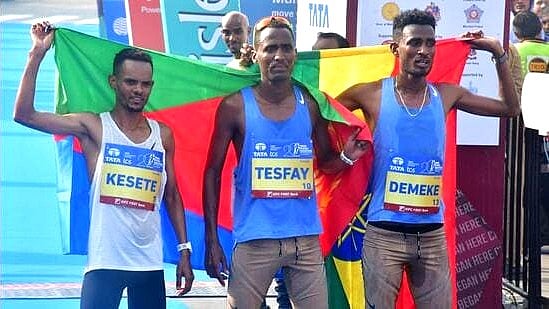 Eritrean Berhane Tesfay and Kenyan Joyce Chepkemoi Tele claimed the men's and women's titles at the 20th Tata Mumbai Marathon, a prestigious World Athletics Gold Label Road Race. Tesfay won his first marathon with a time of 2:11:44, while Tele secured her second consecutive win in just three months, finishing in 2:24:56.