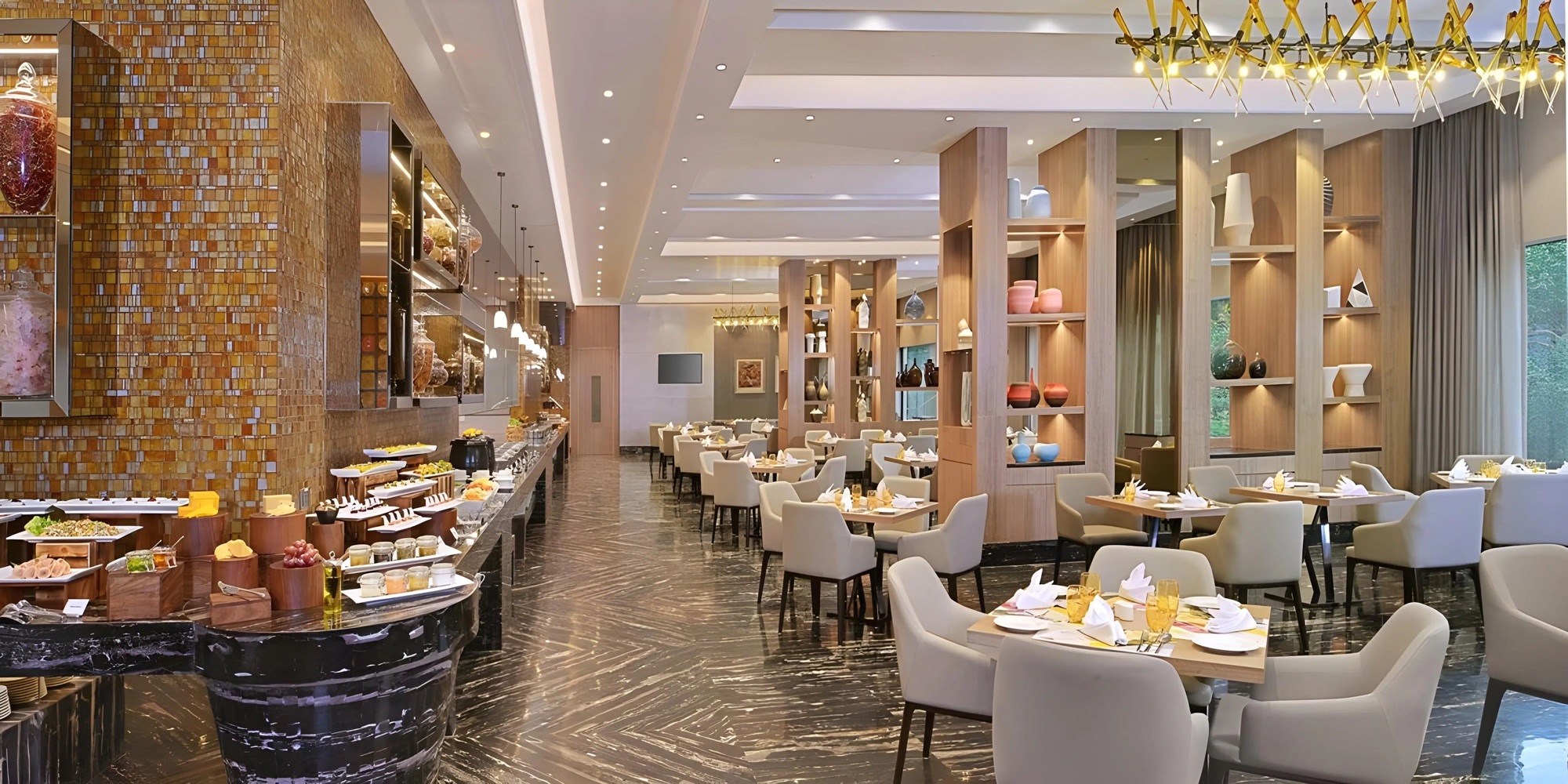 Pondicherry Cafe makes a strong case for going big. This is one of Mumbai’s more expansive luxury buffets, bringing together Indian, North Indian, Asian, Mediterranean and continental cuisines across interactive live counters. The appeal lies in the scale as much as the detail. From regional Indian favourites and grills to sushi, breads and a strong dessert section, the buffet menu is designed for special occasions.