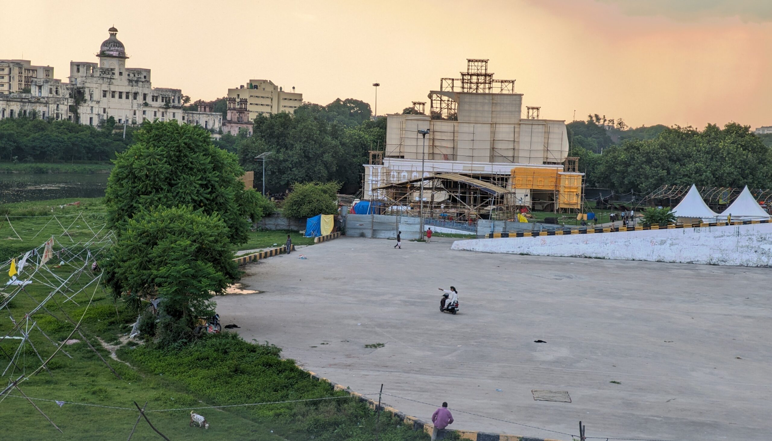 At the moment, the tent inside the pandal is being intricately decorated, while the bamboo structures outside are being covered with tent cloth. In addition to the pandal preparations, stalls, rides, and other fair attractions are being set up to ensure everything is ready by September 7.