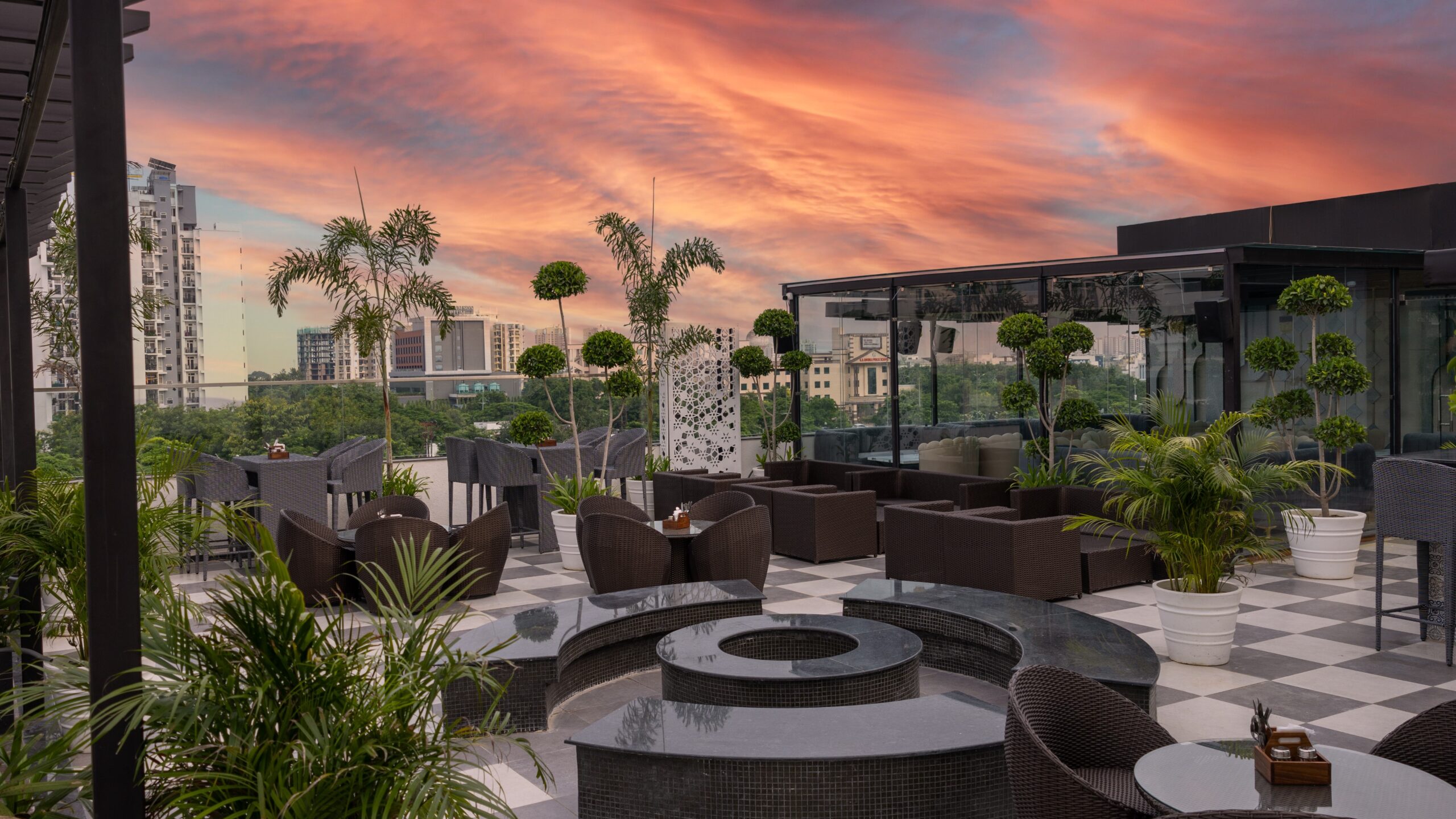 The state-of-the-art property has a massive dance floor and separate discotheque with groovy music, high-quality food and beverages, enlivening vibes and numerous seating arrangements — both indoor and outdoor. Imagine letting your hair down with your private gathering in a beautiful glass cabin on the Meraki terrace while it is drizzling outside and you can view the raindrops falling on the entire city, as you enjoy your meal. Now, how heavenly does that sound?