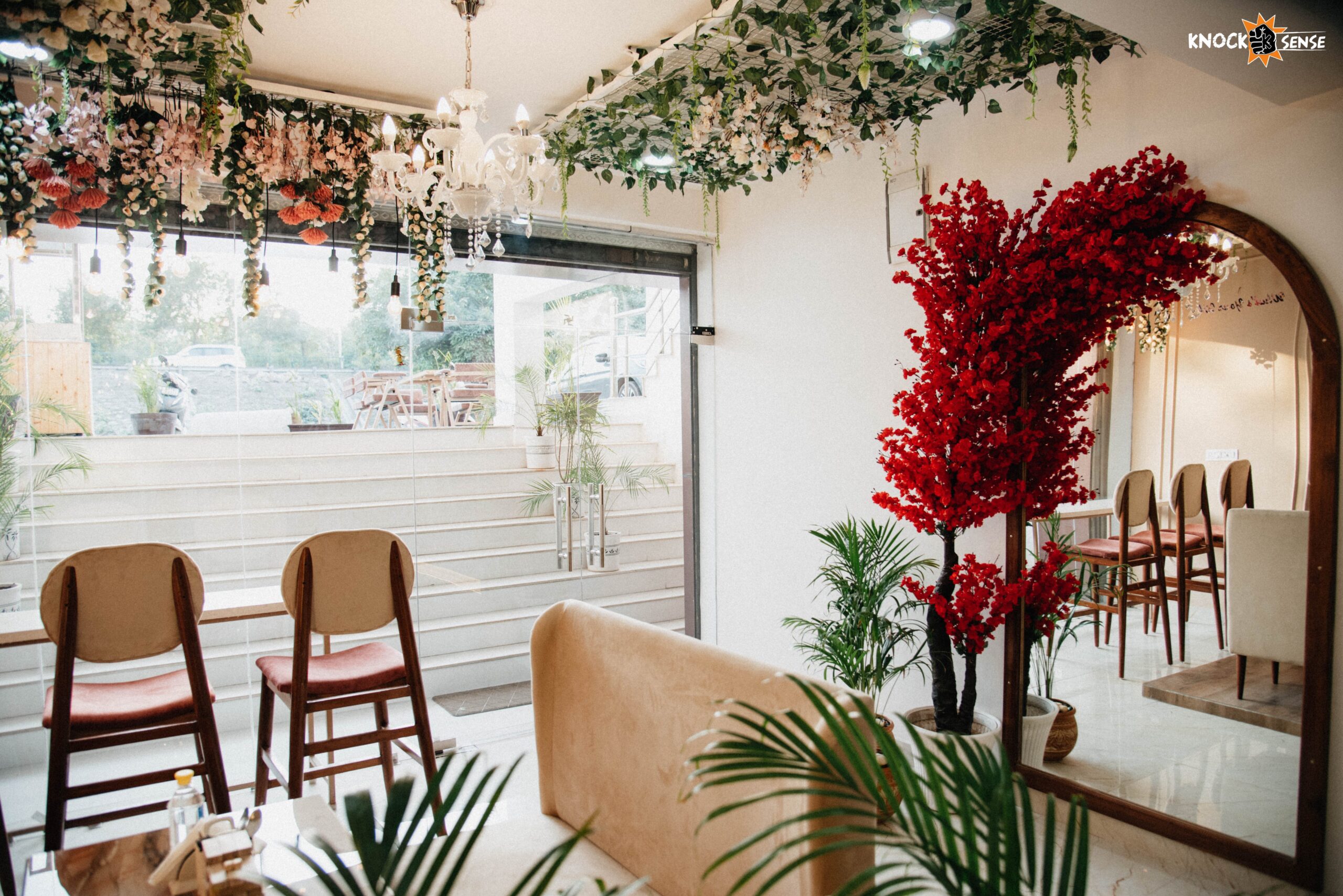 The first thing we did, being the zillennials that we are, clicked a nice mirror selfie the moment we saw a massive mirror with beautiful red flowers on it!